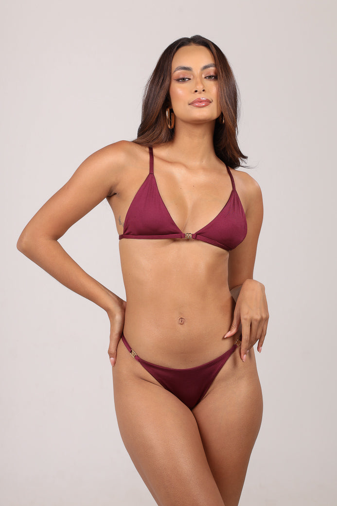 Top estruturado com aro, drapeado sobre o busto, alças finas com regulagem e fecho metálico dourado SS nas costas. Modelagem estilo meia-taça com base reta.
